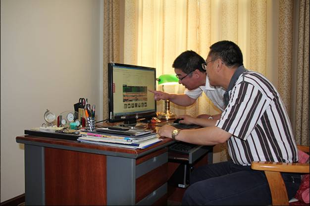 市场负责人向观摩领导现场讲解金马甲网络竞价系统的优越性