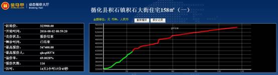 产权交易网络共同市场及电子竞价平台在此项目中功不可没。利用网络交易共同市场平台,产权交易市场联合全国产权交易机构,面向全国发布产权交易信息、组织交易。竞价期间,众多竞买人通过各自的电脑终端,快速将相关数据指令录入房产竞价交易系统,通过互联网对感兴趣的标的物进行在线竞价,创造了资产大幅增值的奇迹:积石大街158㎡的住宅在限时竞价时段网络报价呈现井喷状态,该处房产自竞拍起不到2小时,报价从41.64万元一路猛增至54.74万元,网络报价次数达116次,溢价率高达69% ,令人惊叹。