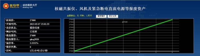 此次活动共有8位竞买人参加网络竞价,起拍价为27000.00元整,经过6次报价,最终以27600.00元整成交,项目增值率达2.0%。