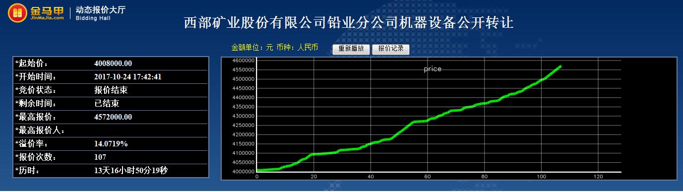 受西部矿业股份有限公司铅业分公司委托,青海省产权交易市场于2017年10月24日对其持有的机器设备(项目编号GZ17QH041023 )实行公开网络竞价处置。