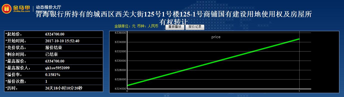青海银行所持有的城西区西关大街125号1号楼125-1号商铺国有建设用地使用权及房屋所有权转让结果公示